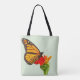 This is a great looking monarch butterfly tote! I love that it has an all-over print and that there is a different monarch on the front and the back of the bag. Great roomy size and overall a great tote to look at and use. Printing was clear and colors are bright and not faded. The monarch butterflies are very clearly and distinctly shown with the dark bold ink colors.