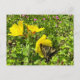 Summertime butterfly postcard! Yellow heirloom, primrose, flowers with yellow monarch butterfly and colourful field flowers. Original photography by Diane Heller, ©️ Diane Heller 2025.