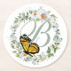 Beautiful floral circle frame with Monarch butterfly and monogram letter.
