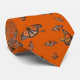 Butterfly pattern, orange tie. The beautiful Monarch butterfly makes a delightful pattern on this dark orange tie. The unique design shows butterflies in flight with black, yellow and orange colours. This butterfly is not only beautiful and amazing, but is a coveted beneficial insect which gardeners love to see.