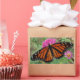Monarch with Wings Outspread on Pink Zinnia Rectangular Sticker