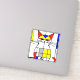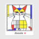 Abstract colourful geometric Mondrian style illustration of a cat with white, yellow, grey and red squares and black lines