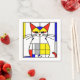 Abstract colourful geometric Mondrian style illustration of a cat with white, yellow, grey and red squares and black lines