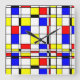 Mondrian colourful Minimalist De Stijl Modern art Square Wall Clock