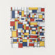 Neoplasticism art with black bold lines and red, yellow and blue squares & rectangles.