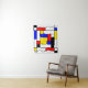 A simple minimalist geometry design inspired by the De Stijl neoplasticism art movement, with bold black lines and white, red, blue, and yellow squares and rectangles.