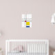 This simple design features modern geometric shapes and graphic color blocks in bold black lines, white and bright primary colors. It is inspired by Piet Mondrian's abstract works and the De Stijl & Neo Plasticism movement.