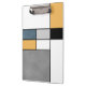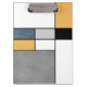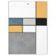 Abstract modern art with colourful (navy blue, grey, black, yellow, white) rectangles in Mondrian style on white background