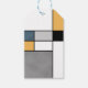 Abstract modern art with colourful (navy blue, grey, black, yellow, white) rectangles in Mondrian style on white background