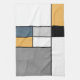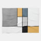 Abstract modern art with colourful (navy blue, grey, black, yellow, white) rectangles in Mondrian style on white background
