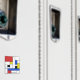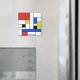 Design inspired by dutch painter Piet Mondrian in red, blue, yellow, and black