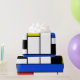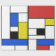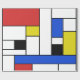 Design inspired by dutch painter Piet Mondrian in red, blue, yellow, and black