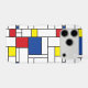This simple design features modern geometric shapes and graphic colour blocks in bold black lines, white and bright primary colours. It is inspired by Piet Mondrian's abstract works and the De Stijl & Neo Plasticism movement.