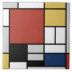 Piet Mondrian began to create the definitive abstract paintings in the 1920s for which he is best known for. He kept his palette limited to white, black, and grey in addition to the three primary colours, red, yellow, and blue. His compositions constructed from thick, black horizontal and vertical lines that outline the various rectangles of colour. This was the simplification of the pictorial elements, essential for Mondrian's creation of new abstract art. The assortment of blocks of colour and lines differing in width creates a sense of rhythm that flows across the canvas, echoing that of modern life. This asymmetrical piece, Composition with Large Red Plane, Yellow, Black, Grey, and Blue, originally painted in 1921 features one large dominant block of colour, in this painting red, a common theme seen in his later works. This is balanced by the distribution of the smaller blocks of yellow, blue-grey, and white.