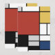 Piet Mondrian began to create the definitive abstract paintings in the 1920s for which he is best known for. He kept his palette limited to white, black, and grey in addition to the three primary colours, red, yellow, and blue. His compositions constructed from thick, black horizontal and vertical lines that outline the various rectangles of colour. This was the simplification of the pictorial elements, essential for Mondrian's creation of new abstract art. The assortment of blocks of colour and lines differing in width creates a sense of rhythm that flows across the canvas, echoing that of modern life. This asymmetrical piece, Composition with Large Red Plane, Yellow, Black, Grey, and Blue, originally painted in 1921 features one large dominant block of colour, in this painting red, a common theme seen in his later works. This is balanced by the distribution of the smaller blocks of yellow, blue-grey, and white.