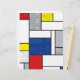 This simple design features modern and graphic colour blocks, bold black lines and bright colours with retro circles pattern. It is inspired by Piet Mondrian's abstract works and movement.