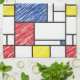 This simple design features modern and graphic colour blocks, bold black lines and bright primary colours in freestyle sketched scribbles. It is inspired by Piet Mondrian's abstract works and movement.