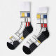 Walk in the footsteps of a modern master with these striking Piet Mondrian-inspired socks. Showcasing the iconic De Stijl art movement, these socks feature a bold geometric grid pattern with vibrant blocks of primary red and yellow. Set against a clean white background with a contrasting black heel and toe, these socks are a true piece of wearable art. Perfect for art lovers, designers, and anyone looking to add a touch of abstract, modernist flair to their wardrobe. Comfortable, stylish, and undeniably unique.