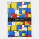 Mondrian Style Red Blue Yellow Black Name Monogram Tea Towel