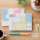 Mondrian Yellow, Pink, Blue, and Black line gifts and accessories features our textured Piet Mondrian inspired art with our unique signature texture and colours in geometric abstract patterns created by our talented artist and draftsman, Kurt Keller.