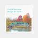 Package of 50 white paper cocktail napkins with an image of a quaint arched turquoise bridge crossing a quiet stream in Gibbs Gardens, Georgia, and trees of red and gold. Optional text. See matching cloth napkin and coasters. See the entire Thanksgiving Napkin collection under the HOME category in the HOLIDAYS section.