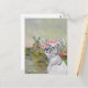 Beautiful and artistic compilation features Claude Monet's CHAMP TULIPES EN HOLLANDE as background with portrait of grey cat with watercolor floral crown overlay.