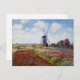 Monet Field of Tulips with Windmill postcard. Oil painting on canvas from 1886. One of Monet’s most colourful works painted around the Rijnsburg Windmill. The tulip fields are bursting with reds, whites, yellows and greens. A beautiful landscape painting that makes a great gift for fans of Claude Monet, tulips, impressionism, windmills, and French art.