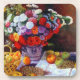 Hard Plastic Coasters featuring Claude Monet’s still life oil painting Flowers and Fruit (1869). Beautiful purple, red, blue, white, orange, and yellow flowers in a vase. Apples, grapes, and other fruits lay on a table. A great gift for fans of impressionism and French art.