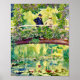 Two men stand on a lush, flower-covered bridge overlooking a pond with water lilies. The vibrant greenery surrounds them, creating a serene atmosphere.