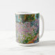 Monet Irises mug. Oil painting on canvas from 1900. Along with his famous water lilies, Monet frequently repainted the purple irises in his garden at Giverny. The soft use of purple flows nicely along the garden path with trees in the background. A great gift for fans of Monet, impressionism, irises and French art.