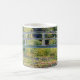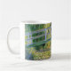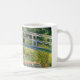 Monet Japanese Bridge with Water Lilies mug. Oil painting on canvas from 1899. Monet painted the Japanese style bridge above his water lily pond at Giverny multiple times throughout his long career. This is one of the most famous of Monet’s Japanese Bridge paintings. The work features the bridge at mid morning with the sun streaming down upon the light green lily pads and pink lily flowers blooming in the pond below. The bridge itself is soft green and blue. A pretty gift for fans of Claude Monet, Impressionism, and French Landscape paintings.