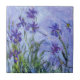 Monet Lilac Irises tile. Oil painting on canvas from 1917. Monet painted irises throughout his career, this is one of his final iris paintings and certainly one of his most haunting. The work is heavily impressionistic and the dark purple irises almost seem to be floating in water above their dark green foliage, the sky above is soft blue and purple. A beautiful gift for fans of Claude Monet, Impressionism, iris paintings and French art.