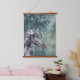 Beautiful and artistic wall tapestry for horse lovers features Claude Monet's Morning on the Seine as background with portrait of black horse with watercolor floral crown overlay.