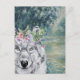 Beautiful and artistic compilation features Claude Monet's Morning on the Seine as background with portrait of grey wolf with watercolor floral crown overlay.