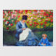 Window Cling featuring Claude Monet’s oil painting Camille Monet and a Child in the Artist’s Garden in Argenteuil (1875). A woman and kid dressed in blue sew and read in a garden of red and white flowers. A great Monet gift for fans of impressionism and French art.