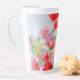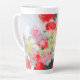 Latte Mug featuring Claude Monet’s flower painting. Beautiful red, yellow, and white peonies in a blue vase. A great Monet gift for fans of impressionism and French art.