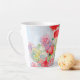 Latte Mug featuring Claude Monet’s flower painting. Beautiful red, yellow, and white peonies in a blue vase. A great Monet gift for fans of impressionism and French art.