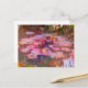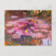 Monet Purple Water Lilies postcards. Oil painting on canvas from 1917. French impressionist Claude Monet remains renowned and beloved for the water lily paintings that he created at his garden pond at Giverny. This specific water lily painting is from 1917 and reveals Monet’s move towards increasing abstraction and more varied colours. The water lilies presented are dark red and wild purple while the pond itself is tinged with reflections. A pretty gift for fans of Monet, Impressionism, water lily paintings and French art.