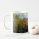 Monet Rose Garden mug. Oil on canvas from 1883. French Impressionist Claude Monet created some of the most beautiful garden landscapes near his home in Giverny. This is one of his earlier works depicting a rose garden in the morning near Argenteuil. The work features yellow, red and white roses blooming peacefully in front of a home as a couple walks in the distance near a fence and swaying trees. A pretty gift for fans of Monet, Rose Paintings, and Impressionist Landscapes.