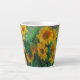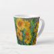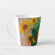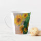 Latte Mug featuring Claude Monet’s oil painting Bouquet of Sunflowers (1881). Beautiful sunflowers in a blue vase atop a red table. A great gift for fans of impressionism and French art.