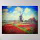Poster featuring Claude Monet’s flower and windmill painting. Beautiful and colourful fields of red, pink, and yellow tulips next to a windmill and house in Holland. A great Monet gift for fans of impressionism and French art.
