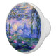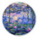 Claude Monet was one of the founders of French Impressionism painting in outdoor landscapes. This is one of his many garden water lily pond paintings showing the reflection from the sky above, with weeping willow branches hanging down over the pond, and the lily flowers floating in the water.