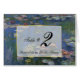 Lovely fine art wedding reception table number tent card. The colourful fine art painting Water Lilies by Monet serves as the background to this table tent card. Graphics of a gold tone edged text area, in the middle, has black custom text ready to personalise. Change number and text for each table at your reception.