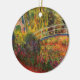 Ornament featuring Claude Monet’s oil painting of a Japanese bridge and beautiful flowers. Water lily pond and water irises bathed in pink light. Serene nature impressionism with lovely flowers and scenic pond landscape. A great Monet gift for fans of impressionism and French art.