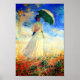 Poster featuring Claude Monet’s wife, Camille, holding a green parasol while her blue veil is blown by the wind in a green and golden field. A great Monet gift for fans of impressionism and French art.