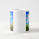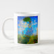 A family portrait giant coffee mug featuring Claude Monet’s wife, Camille, holding a parasol, and their son, Jean, taking a walk in a vibrant green field being blown by the wind on a summer’s day. A great Monet gift for fans of impressionism and French art.