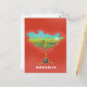 Mongolian illustrated map, landscape and prop plane blade vacation tourist poster against a vivid red background.