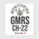 I monitor GMRS channel 22 sticker for onboard GMRS two way radio.