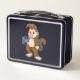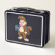 This is a standard metal lunchbox that appears to work just fine. We designed this box ourselves with an uploaded photo and custom text on the front and back. It looks absolutely beautiful except the front of the lunchbox is not centered like it shows in the photo. The print borders don't align with the inset flat part of the box where the preview photo online showed it perfectly centered in there. The back looks nice and centered though.