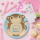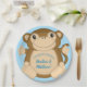 Adorable monkey baby shower design is great for a safari, zoo or jungle theme baby shower! The cartoon monkey on a blue background makes a great look for celebrating a baby boy on the way!